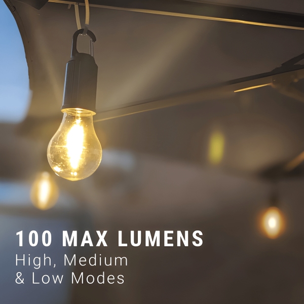 🌟 3 нива на яркост – меко околно сияние за дългите летни нощи или ярка светлина за вечери на открито и късни разговори.