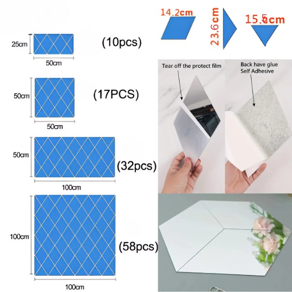Материал: Акрилно огледало със защитно фолио (отстранете го преди употреба)
