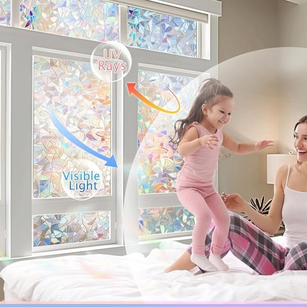 Когато слънчевата светлина попадне върху фолиото, то създава хипнотизираща цветна дъга в цялата стая, но не блокира естествената светлина. Това фолио работи добре във всяка стая – всекидневни, бани, офиси и дори стъклени врати, което го прави универсално решение за различни пространства.