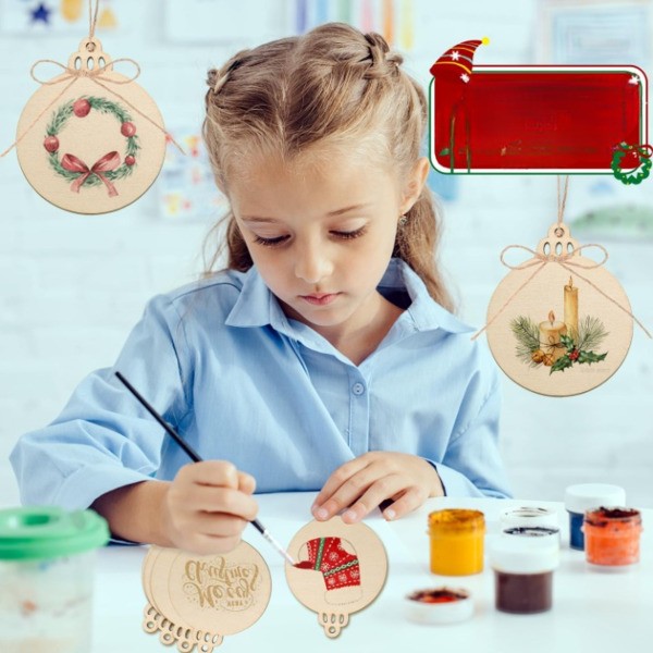 Преобразете празничния си декор с 30 първокласни, предварително пробити дървени диска, идеални за изработване на персонализирани орнаменти, които придават рустикален чар на Коледната ви елха.